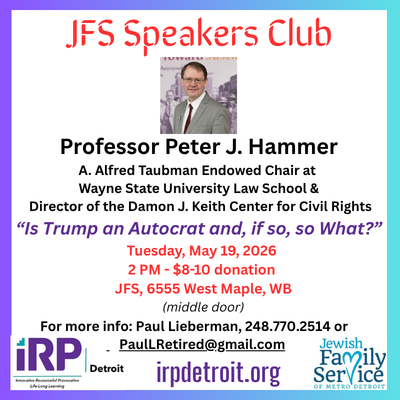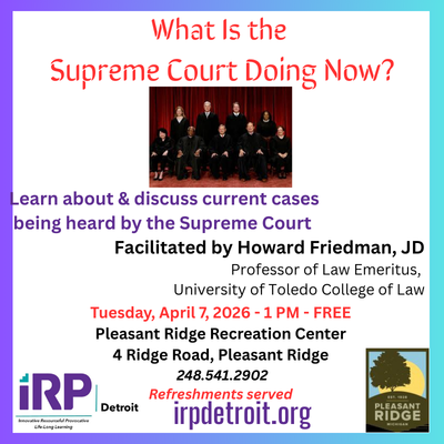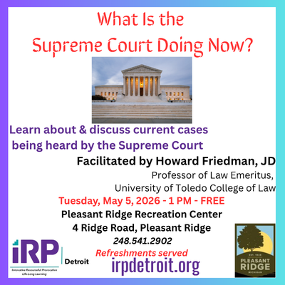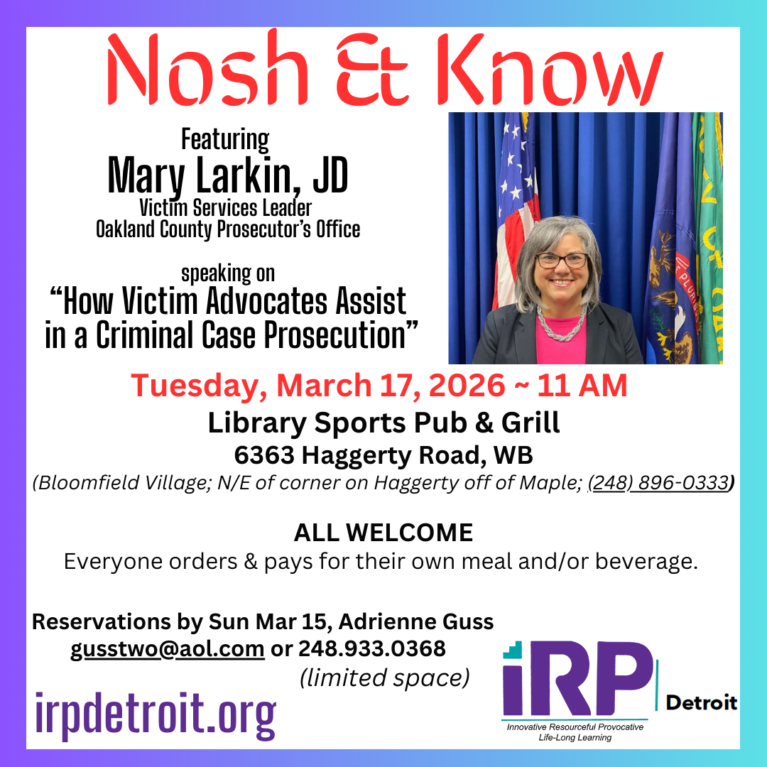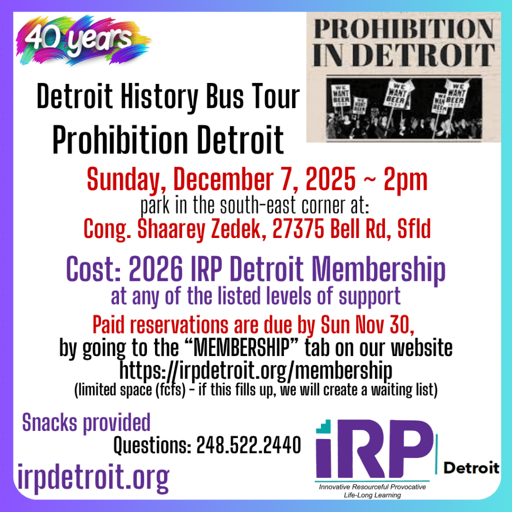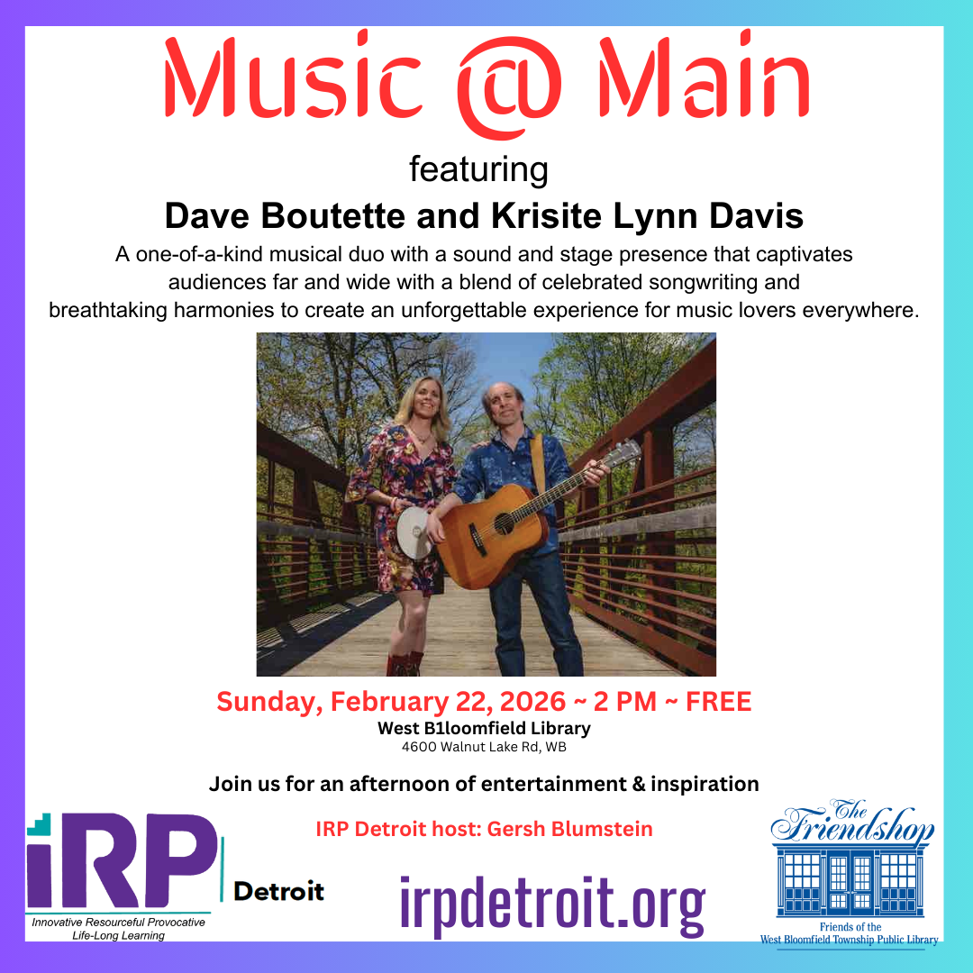 Welcome to IRP Detroit! We are a vibrant community of life-long learners creating a forum together for adults seeking both intellectual stimulation and social engagement. At IRP Detroit, we pride ourselves on fostering an inclusive environment where members creatively pursue interests together with a year-round calendar of activities, events and a dynamic array of topical and educational interest groups designed to ignite curiosity and encourage meaningful conversations.